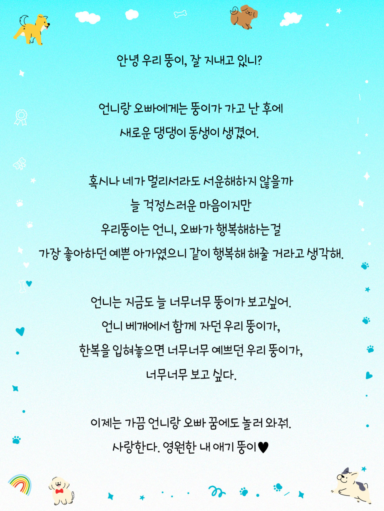 ์ฐ๋ฆฌ ์์ ์น๊ตฌ์๊ฒ ํธ์ง๋ฅผ ๋จ๊ฒจ๋ณด์ธ์.